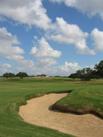 Champ D'or - Texas With a mansion and several extravagant guest homes on the 250 acre property, the best use of the land may be an upscale resort hotel and an ultra exclusive golf club. The features are bold, and the golf strategic. The enchanting routing to the right can be viewed in detail by clicking the image. |